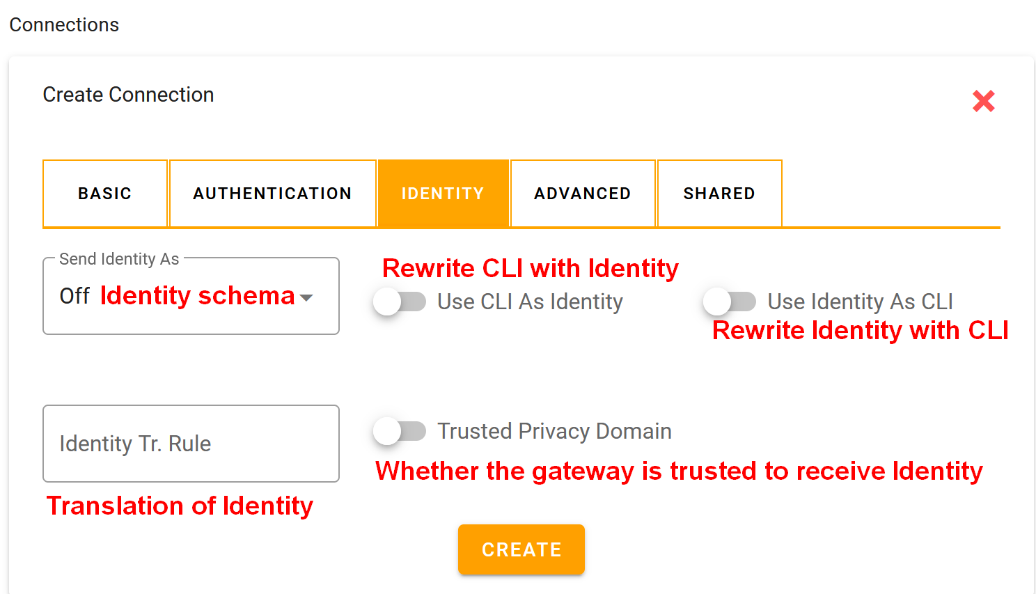 - Use CLI as Identity - when enabled, the header with the privacy information may be populated from the CLI. If Send Identity As is set to Off, no header would be generated.