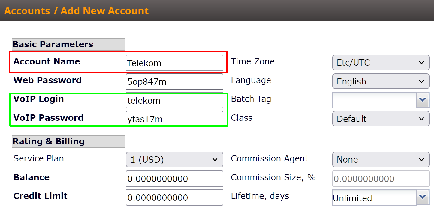 1.1 Create an Account on Sippy Softswitch or use existing one, note its Account Name, VoIP Login and VoIP Password